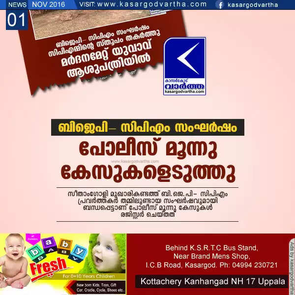 Keywords: Kasaragod, Kerala, Seethangoli, BJP, CPM, case, Investigation, Clash, BJP- CPM conflict: police 3 cases registered.