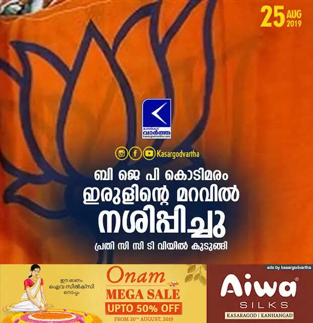 ബി ജെ പി കൊടിമരം ഇരുളിന്റെ മറവില് നശിപ്പിച്ചു; പ്രതി സി സി ടി വിയില് കുടുങ്ങി