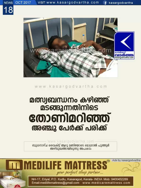 Keywords : Kasaragod, News, Accident, Fishermen, Hospital, Treatment, Mogral Puthur.