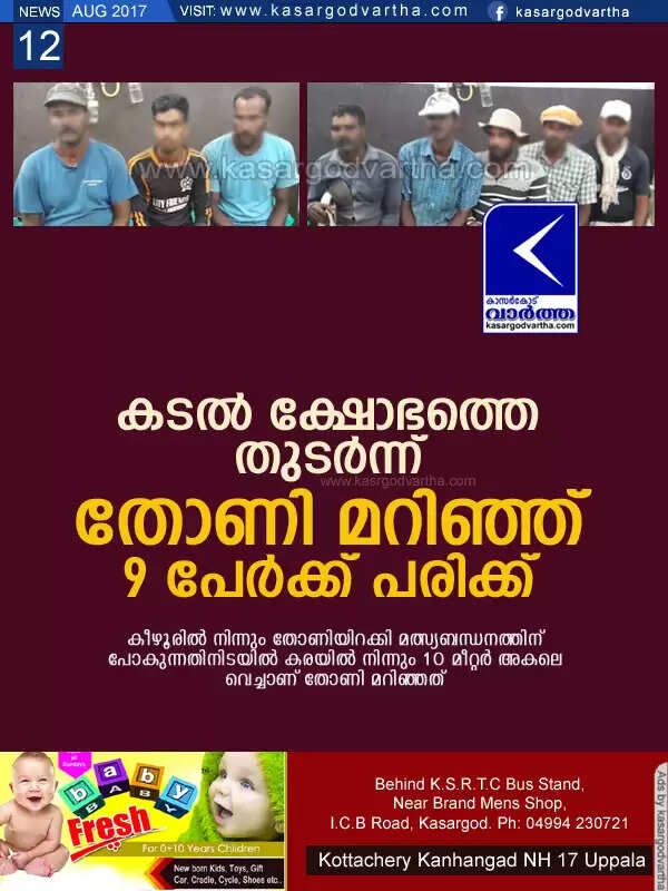 കടല് ക്ഷോഭത്തെ തുടര്ന്ന് തോണി മറിഞ്ഞ് 9 പേര്ക്ക് പരിക്ക്