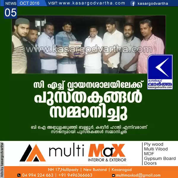 Keywords: Kasaragod, Kerala, Mogral puthur, CH Muhammed Koya, Memorial, Library, Book, Sponsored by, BI Abdulla Kunjhi, Kabeer Haji,