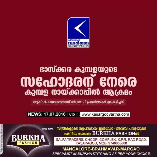 Keywords : Kumbala, Attack, DYFI, CPM, Leader, Kasaragod, BJP, Complaint, Police, Madhava Kumbala, Brother of Bhaskara Kumbala assaulted by BJP volunteers.