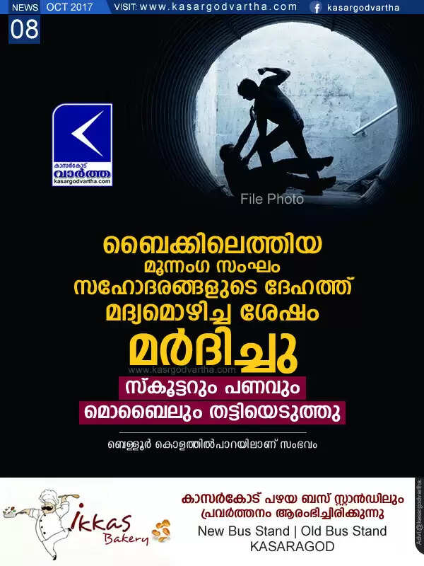Keywords: Kasaragod, Kerala, news, Liquor, Police, Investigation, case, complaint, Held, Bike, Attack, Assault, Brothers assaulted; Scooter, Cash and Mobile phone looted, police investigation started