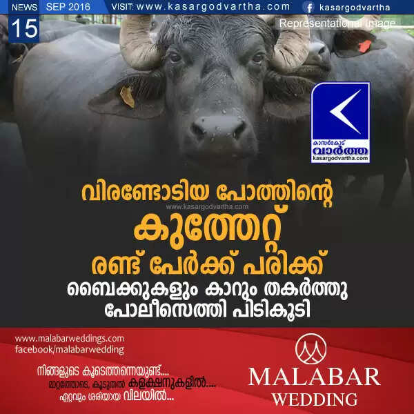 Keywords: Kasaragod, Kerala, Mulleria, Car, Police, Buffalo, Balakrishna, Buffalo hits: two injured.