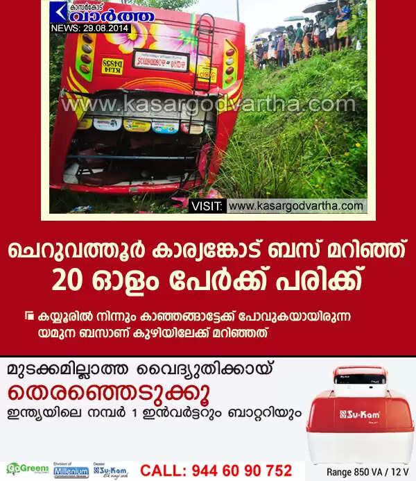 Keywords: Kasaragod, Kerala, Cheruvathur, Injured, Bus, Accident, Bus accident, Kayyur, Kanhangad, Yamuna Bus.
