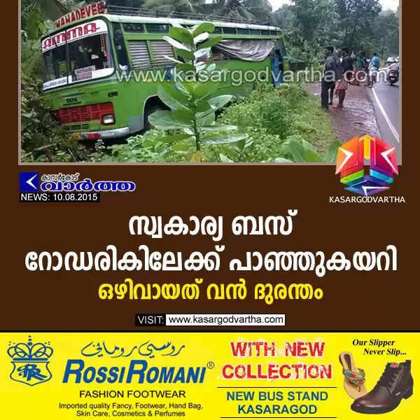 Keywords: Accident, Mulleria, Bus-accident, Kasaragod, Kerala, Miraculous escape for passengers, Advertisement Rossi Romani
