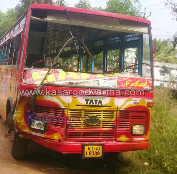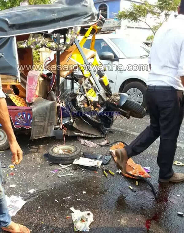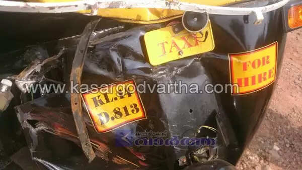 Keywords: kasaragod, Kerala, Uppala, Accident, Bus, Injured, Treatment, hospital, Auto-rickshaw, marriage, Bus-accident, Police, Kumbala, National highway, Bus hits Auto Rikshaw; driver injured.