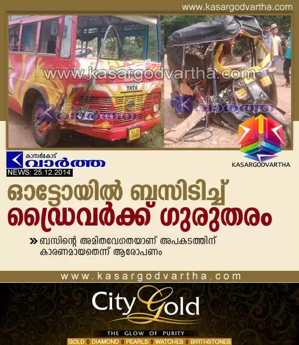 ഓട്ടോയില് ബസിടിച്ച് ഡ്രൈവര്ക്ക് ഗുരുതരം