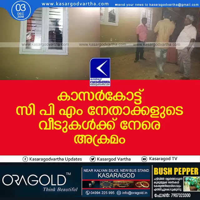 കാസര്കോട്ട് സി പി എം നേതാക്കളുടെ വീടുകള്ക്ക് നേരെ അക്രമം