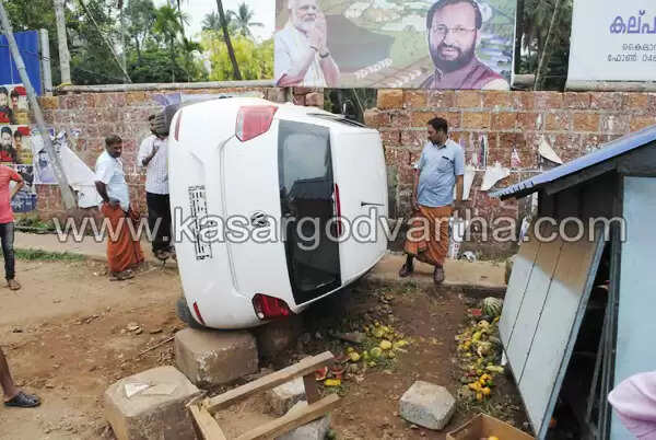 പെട്ടികടയില്‍ വില്‍പ്പനക്ക് വെച്ച പഴവര്‍ഗ്ഗങ്ങള്‍ മുഴുവനും നശിച്ചുപോയി. ഈ സമയത്ത് മറ്റ് വാഹനങ്ങളൊ വഴിയാത്രക്കാരോ ഇല്ലാത്തതിനാല്‍ വന്‍ അപകടം ഒഴിവാകുകയായിരുന്നു. മംഗളൂരു വിമാനത്താവളത്തില്‍ പോയി തിരിച്ച് കണ്ണൂരിലേക്ക് പോകുകയായിരുന്ന കണ്ണൂര്‍ സ്വദേശി ഷമിയാസ് (38) ഓടിച്ച കാറാണ് അപകടത്തില്‍പ്പെട്ടത്. അപകടത്തില്‍ സാരമായി പരിക്കേറ്റ ഷമിയാസിനെ മാവുങ്കാലിലെ ആശുപത്രിയില്‍ പ്രവേശിപ്പിച്ചു.