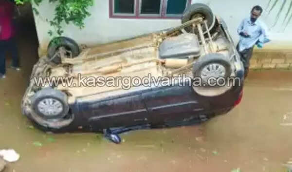 കയറ്റത്തില്‍ കാര്‍ നിയന്ത്രണംവിട്ട് വീട്ടുമുറ്റത്തേക്ക് തലകീഴായി മറിഞ്ഞു