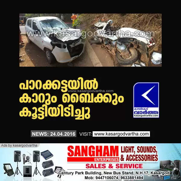 Keywords: Kasaragod, Parakatta, Car-Accident, Bike, Vidya Nagar, Police, Injury, Morning, Collided.