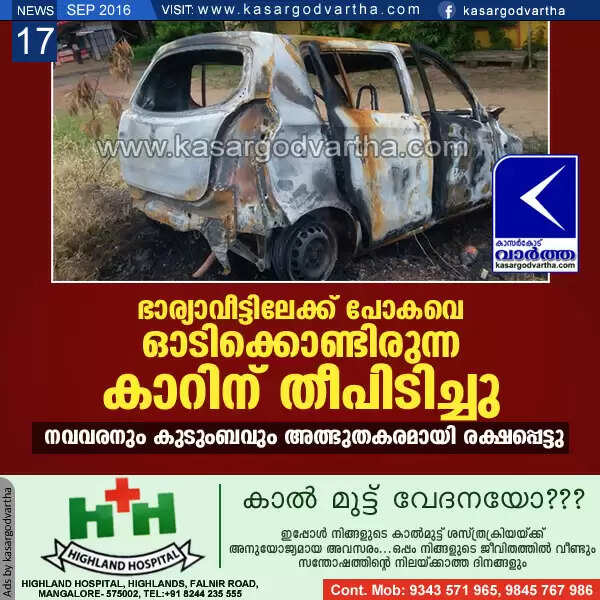 Keywords: Kasaragod, Kerala, Family, Car, Burnt, Car-burnt, Car burnt in Kotta, House wife, Fire force, Fire, Mobile Phone, Adhar card.