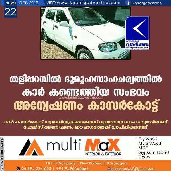 തളിപ്പറമ്പില് ദുരൂഹസാഹചര്യത്തില് കാര് കണ്ടെത്തിയ സംഭവം; അന്വേഷണം കാസര്കോട്ട്