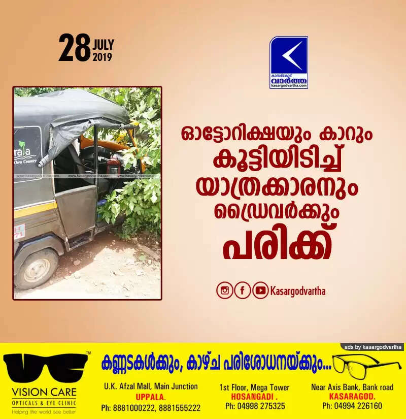 Keywords: Kasaragod, Kerala, news, Kanhangad, Driver, Auto Driver, Auto-rickshaw, Accident, Car, Car hit with Auto rikshaw; 2 injured