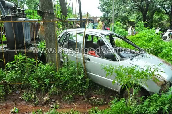 Keywords : Car Accident, Kasaragod, Kerala, Escape, Transformer, Tree, Hits, Car hits transformer wall.