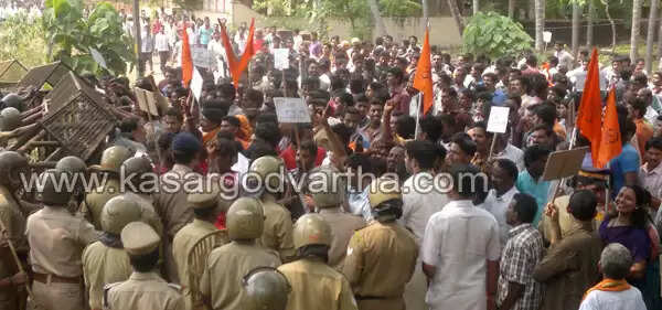 കാസര്കോട്: ജില്ലാ പോലീസ് ആസ്ഥാനത്തേക്ക് അനുമതിയില്ലാതെ മാര്ച് നടത്തുകയും റോഡ് തടസപ്പെടുത്തുകയും ചെയ്തതിന് ബി.ജെ.പി-വിശ്വ ഹിന്ദു പരിഷത്ത് നേതാക്കളുള്പെടെ ആയിരം പേര്ക്കെതിരെ ടൗണ് പോലീസ് കേസെടുത്തു.