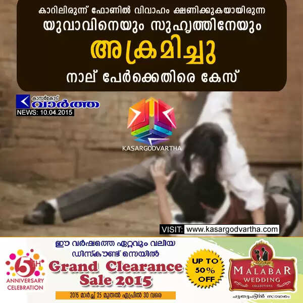 Keywords: Kasaragod, Kerala, Assault, complaint, Police, case, Attack, marriage, Mobile Phone, Call, Case against 4 for assaulting youths.