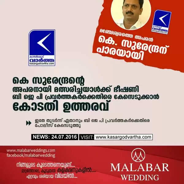 കെ സുരേന്ദ്രന്റെ അപരനായി മത്സരിച്ചയാള്ക്ക് ഭീഷണി; ബി ജെ പി പ്രവര്ത്തകര്ക്കെതിരെ കേസെടുക്കാന് കോടതി ഉത്തരവ്