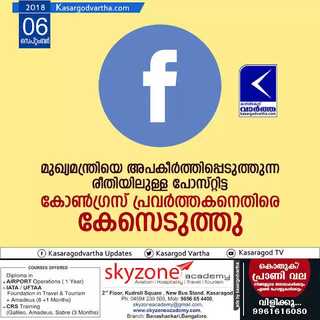 Keywords:  Vellarikundu, Kasaragod, News, Case, Congress Worker, Social Media