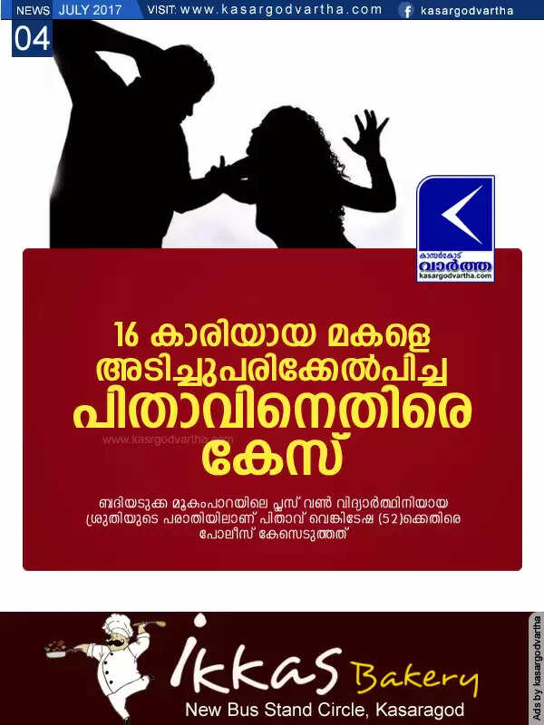 Keywords: Kasaragod, Kerala, Badiyadukka, news, case, Assault, Case against father assaulting daughter
