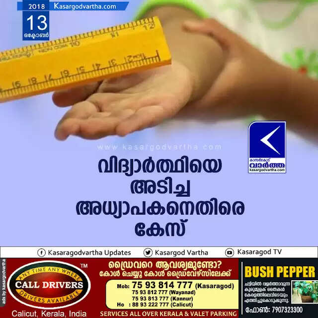 Keywords: Case against Teacher for Beating Student, Badiyadukka, Kasaragod, News, Student, Teacher, Injured.