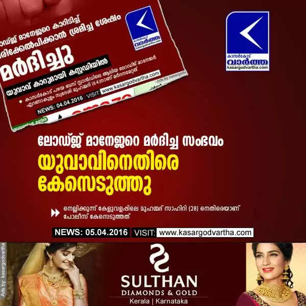 ലോഡ്ജ് മാനേജറെ മര്ദിച്ച സംഭവം; യുവാവിനെതിരെ കേസെടുത്തു