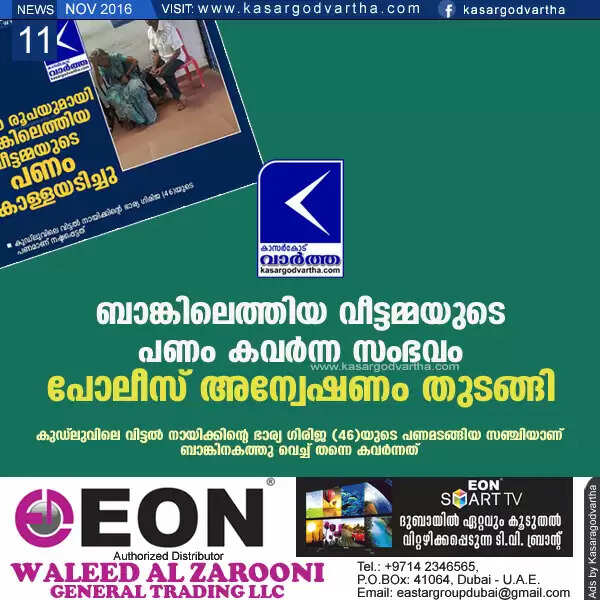 Keywords: Kasaragod, Bank, Cash, House Wife, Police, Investigation, Case, Kudlu, Form, CCTV.