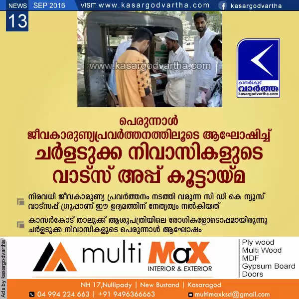 പെരുന്നാള് ജീവകാരുണ്യപ്രവര്ത്തനത്തിലൂടെ ആഘോഷിച്ച് ചര്ളടുക്ക നിവാസികളുടെ വാട്സ് അപ്പ് കൂട്ടായ്മ