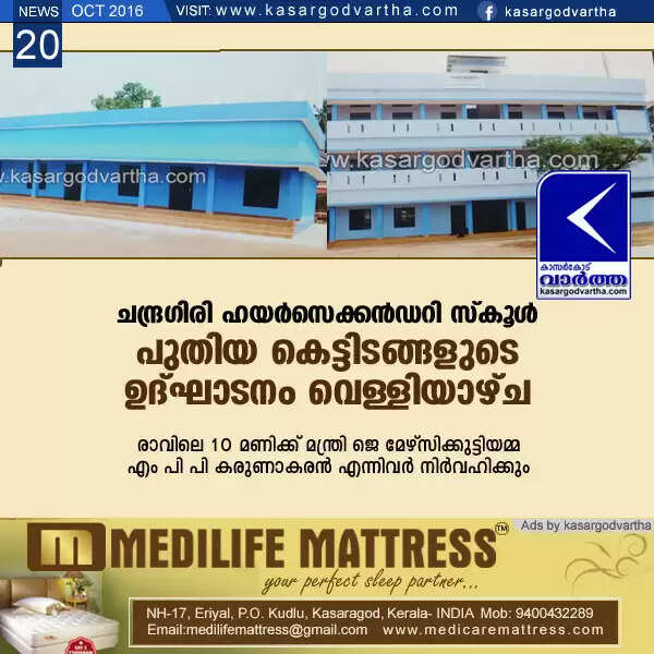ചന്ദ്രഗിരി ഹയര്സെക്കന്ഡറി സ്കൂള് പുതിയ കെട്ടിടങ്ങളുടെ ഉദ്ഘാടനം വെള്ളിയാഴ്ച