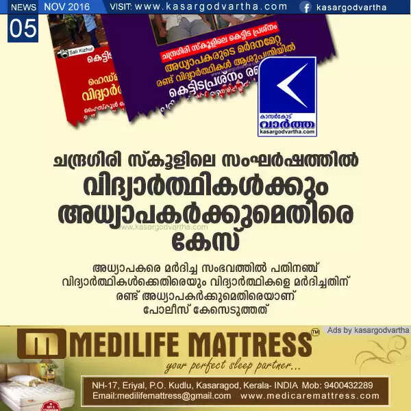 Keywords: Kasaragod, Kerala, Teacher, school, Clash, Students, Chandragiri school clash; case registered.