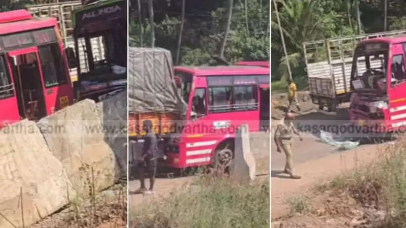 ചെർക്കള - ചട്ടഞ്ചാൽ ദേശീയ പാതയിൽ ലോറിയും ബസും കൂട്ടിയിടിച്ച് അപകടം; 20 യാത്രക്കാർക്ക് പരിക്ക്