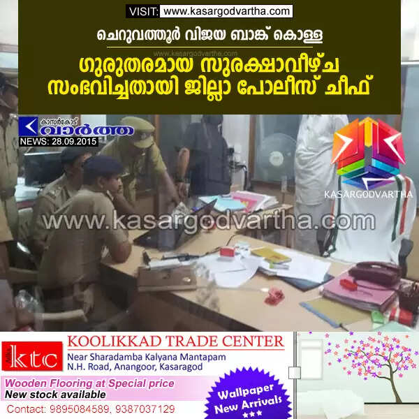ചെറുവത്തൂര് വിജയ ബാങ്ക് കൊള്ള: ഗുരുതരമായ സുരക്ഷാവീഴ്ച സംഭവിച്ചതായി ജില്ലാ പോലീസ് ചീഫ്