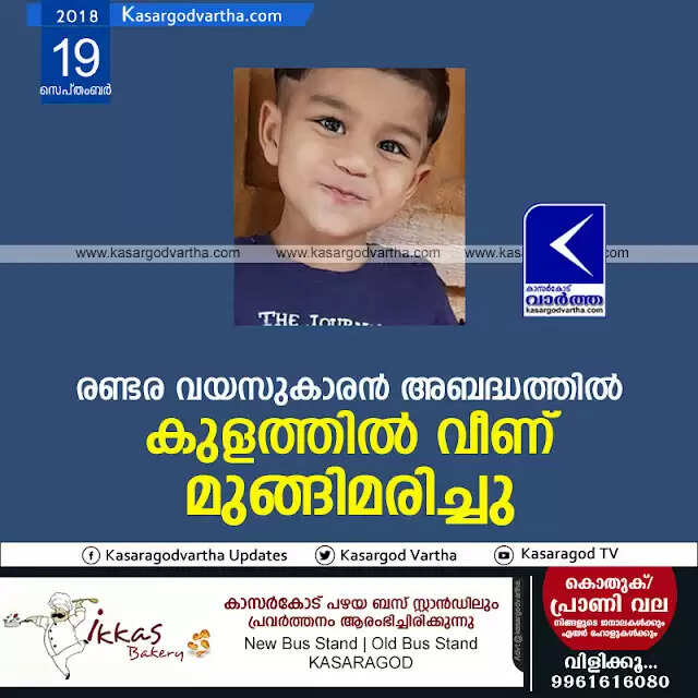 Keywords: Kasaragod, Kerala, News, Padanna, Child, Died, Water, Drowned, Pond, Child drowned to death.