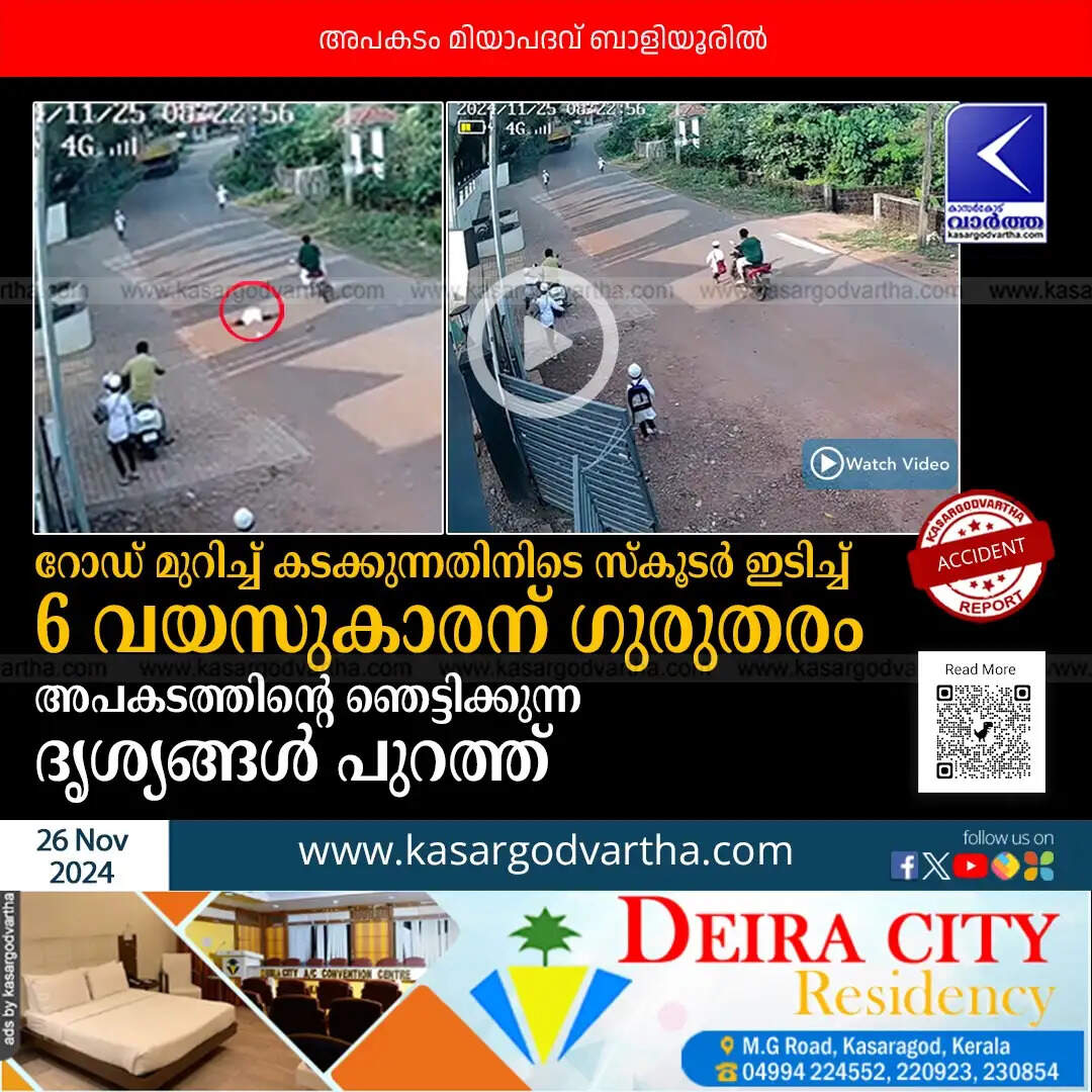 Accident | റോഡ് മുറിച്ച് കടക്കുന്നതിനിടെ സ്കൂടർ ഇടിച്ച് 6 വയസുകാരന് ഗുരുതരം; അപകടത്തിന്റെ ഞെട്ടിക്കുന്ന ദൃശ്യങ്ങൾ പുറത്ത്