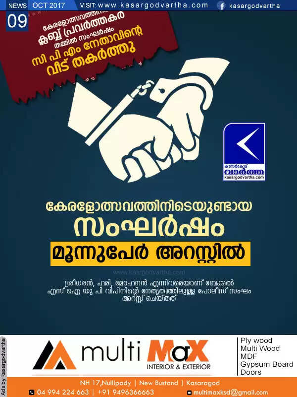 Keywords:  Kasaragod, Kerala, news, Uduma, arrest, Police, complaint, case, Investigation, Attack, Assault, Club, District-Keralothsavam, clash-between-club-volunteers; 3 arrested