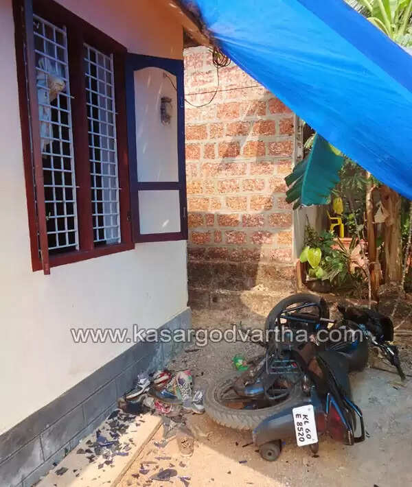 കൂളിക്കുന്ന് കല്ലുവളപ്പിലെ നാരായണന്റെ വീടിന്റെ ഗ്ലാസുകളും ഓട്ടോയും തകര്‍ത്ത നിലയില്‍
