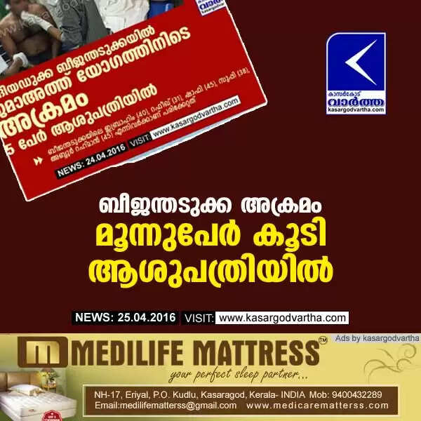 ബീജന്തടുക്ക അക്രമം: മൂന്നുപേര് കൂടി ആശുപത്രിയില്