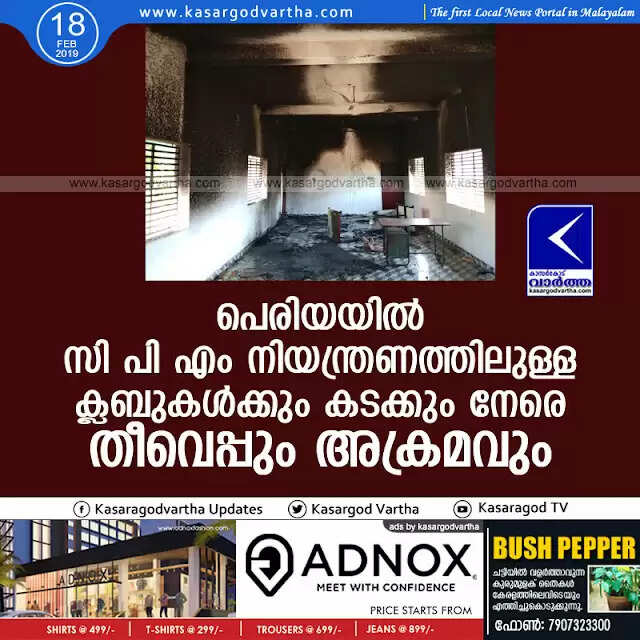 പെരിയയില്‍ സി പി എം നിയന്ത്രണത്തിലുള്ള ക്ലബുകള്‍ക്കും കടക്കും നേരെ തീവെപ്പും അക്രമവും