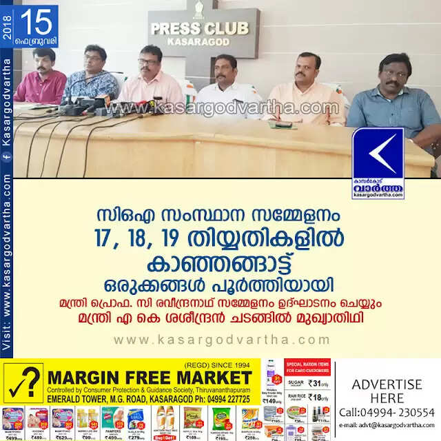 സി ഒ എ സംസ്ഥാന സമ്മേളനം 17, 18, 19 തിയ്യതികളില് കാഞ്ഞങ്ങാട്ട്; ഒരുക്കങ്ങള് പൂര്ത്തിയായി, മന്ത്രി പ്രൊഫ. സി രവീന്ദ്രനാഥ് സമ്മേളനം ഉദ്ഘാടനം ചെയ്യും, മന്ത്രി എ.കെ ശശീന്ദ്രന് ചടങ്ങില് മുഖ്യാതിഥി