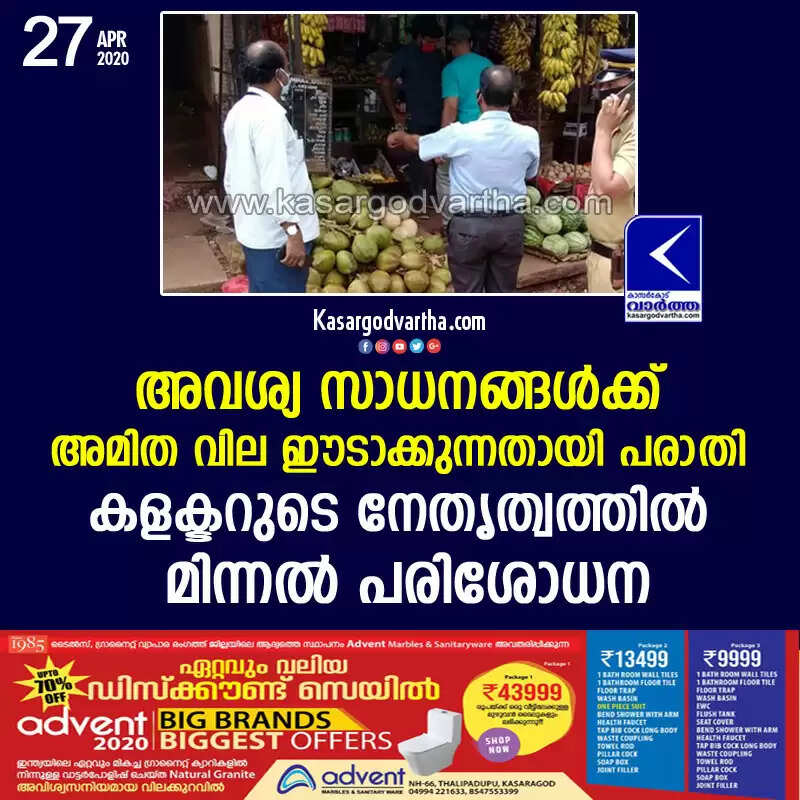 അവശ്യ സാധനങ്ങള്ക്ക് അമിത വില ഈടാക്കുന്നതായി പരാതി; കളക്ടറുടെ നേതൃത്വത്തില് മിന്നല് പരിശോധന