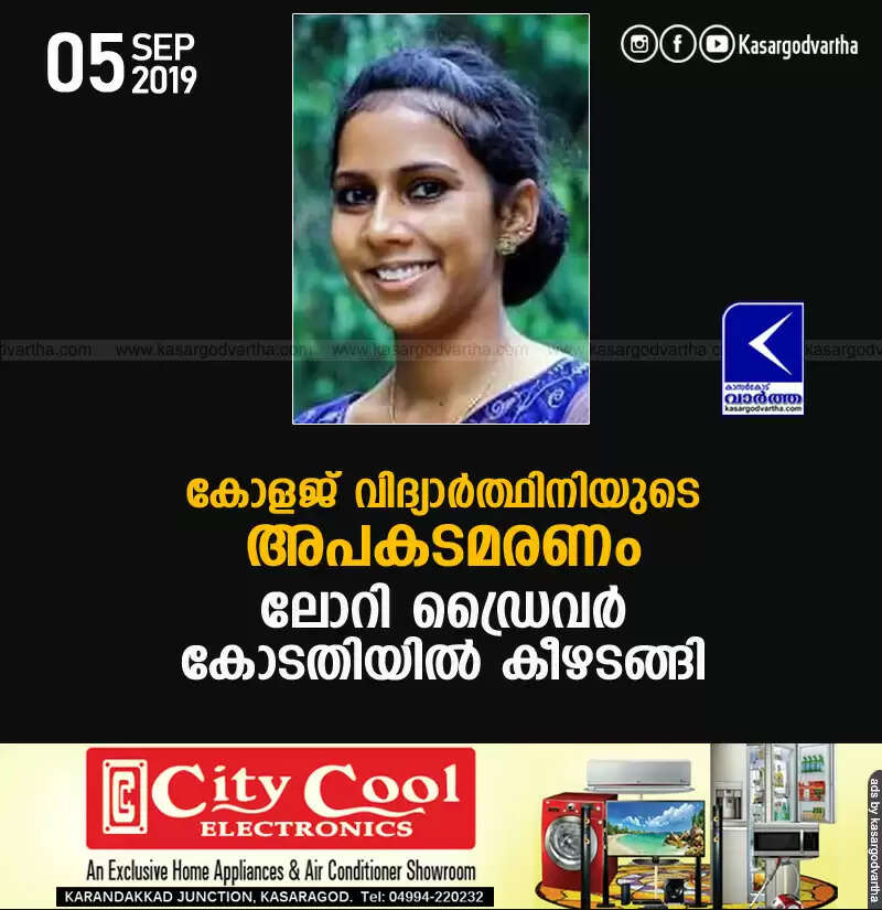 Keywords: kasaragod, Kerala, news, chittarikkal, Student, Accident, Death, Lorry, Driver, court, College student's accidental death; Lorry driver surrendered before court < !- START disable copy paste -->
