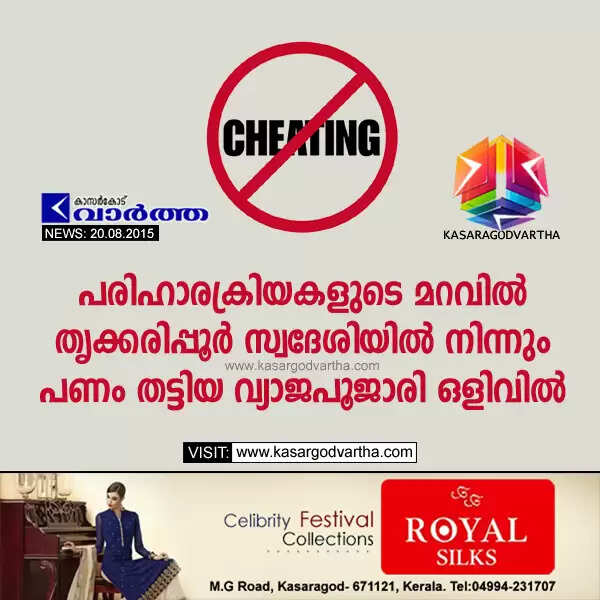 Keywords : Kasaragod, Kerala, Nileshwaram, Complaint against fake Poojari, Priest, Complaint against fake Poojari, Royal Silks.