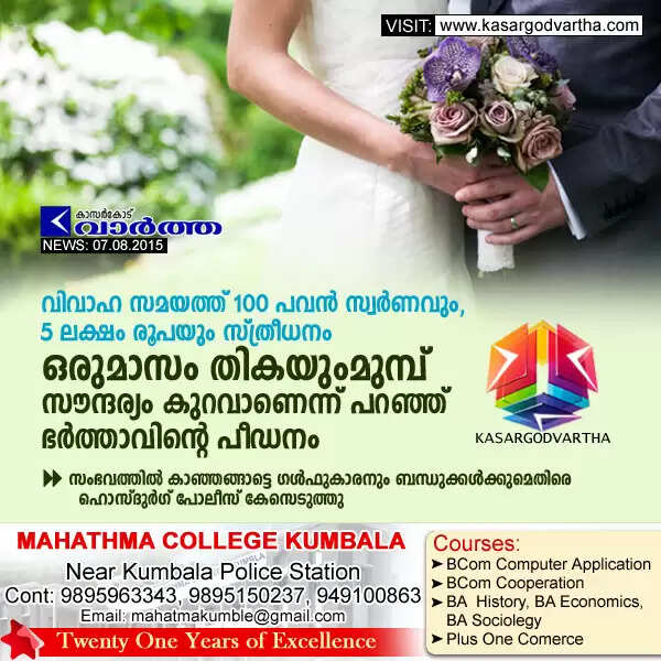 വിവാഹ സമയത്ത് 100 പവന് സ്വര്ണവും, 5 ലക്ഷം രൂപയും സ്ത്രീധനം; ഒരുമാസം തികയുംമുമ്പ് സൗന്ദര്യം കുറവാണെന്ന് പറഞ്ഞ് ഭര്ത്താവിന്റെ പീഡനം