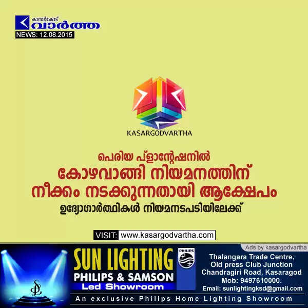 പെരിയ പ്‌ളാന്റേഷനില്‍ കോഴവാങ്ങി നിയമനത്തിന് നീക്കം നടക്കുന്നതായി ആക്ഷേപം; ഉദ്യോഗാര്‍ത്ഥികള്‍ നിയമനടപടിയിലേക്ക്