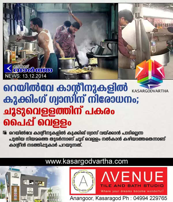 റെയില്വേ കാന്റീനുകളില് കുക്കിംഗ് ഗ്യാസിന് നിരോധനം; ചൂടുവെള്ളത്തിന് പകരം പൈപ്പ് വെള്ളം