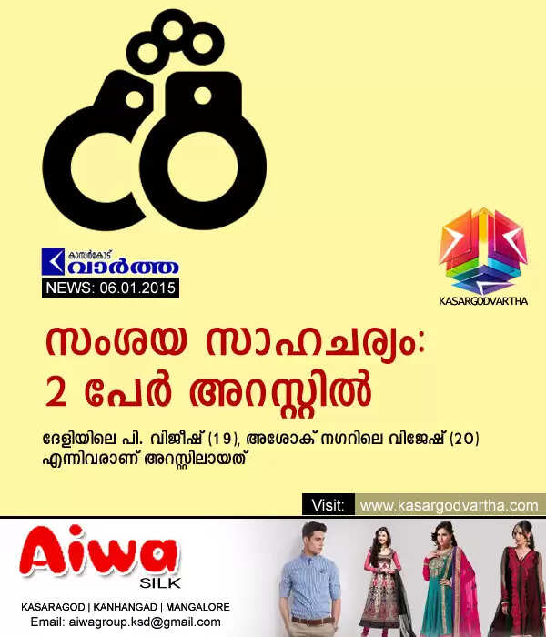 Keywords: Arrest, kasaragod, Deli, Police, Kerala, Thalipaduppu, Confused situation: 2 arrested.