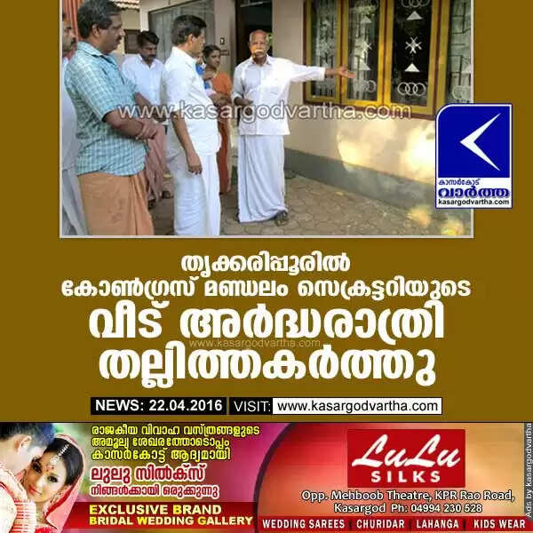 തൃക്കരിപ്പൂരില്‍ കോണ്‍ഗ്രസ് മണ്ഡലം സെക്രട്ടറിയുടെ വീട് അര്‍ദ്ധരാത്രി തല്ലിത്തകര്‍ത്തു
