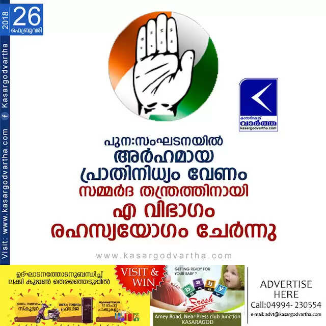 Keywords: Kasaragod, Kerala, News, Congress, KPCC, Congress A Secret meeting conducted.