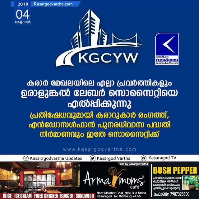 കാസര്കോട്: (www.kasargodvartha.com 04.10.2018) കരാര് മേഖലയിലെ എല്ലാ പ്രവര്ത്തികളും ഉരാളൂങ്കല് ലേബര് സൊസൈറ്റിയെ എല്പ്പിക്കുന്നതിനെതിരെ പ്രതിഷേധവുമായി കരാറുകാര് രംഗത്ത്. എന്ഡോസള്ഫാന് പുനരധിവാസ പദ്ധതി നിര്മാണവും ഇതേ സൊസൈറ്റിക്കാണ് നല്കിയതെന്നും ഈ നീക്കം ഉപേക്ഷിക്കണമെന്നും കേരള ഗവ. കോണ്ട്രാക്ടേഴ്സ് യൂത്ത് വിംഗ് കാസര്കോട് ജില്ലാ കമ്മിറ്റി ആവശ്യപ്പെട്ടു.